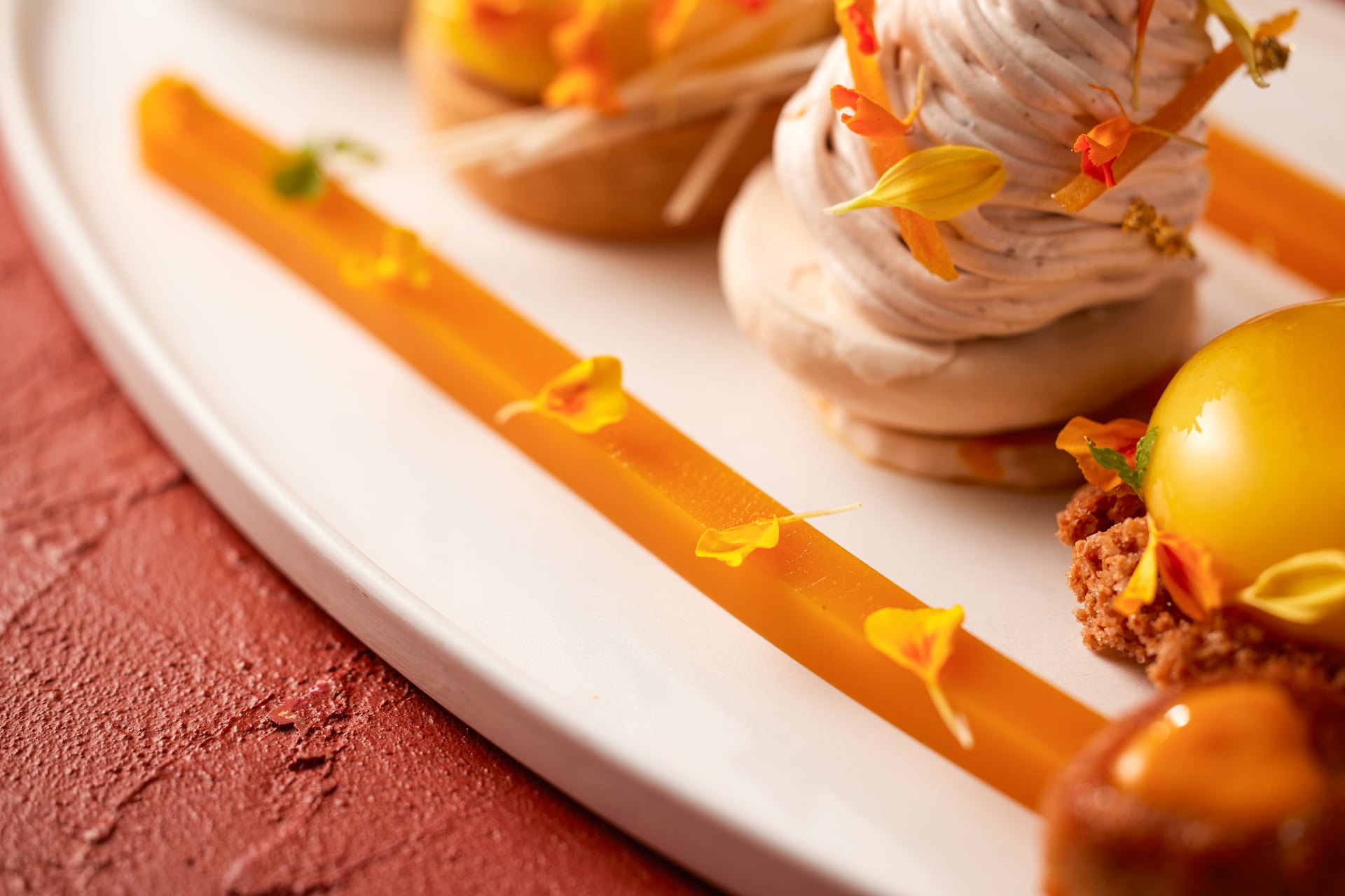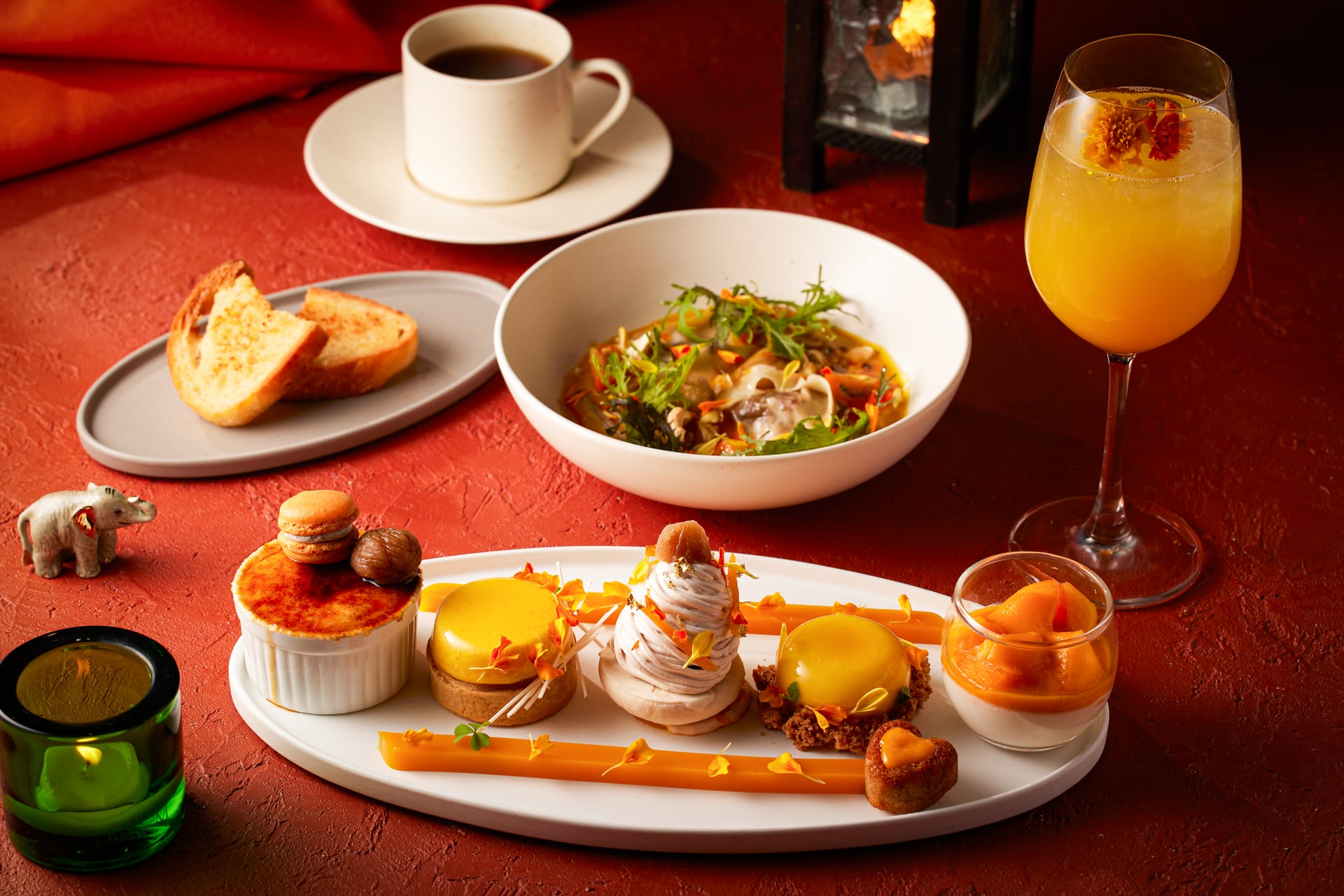 オレンジカラーで統一し、動物性食材を一切使用しないヴィーガン仕様の『オリエンタル オータム アフタヌーンティー』を1か月限定でご提供