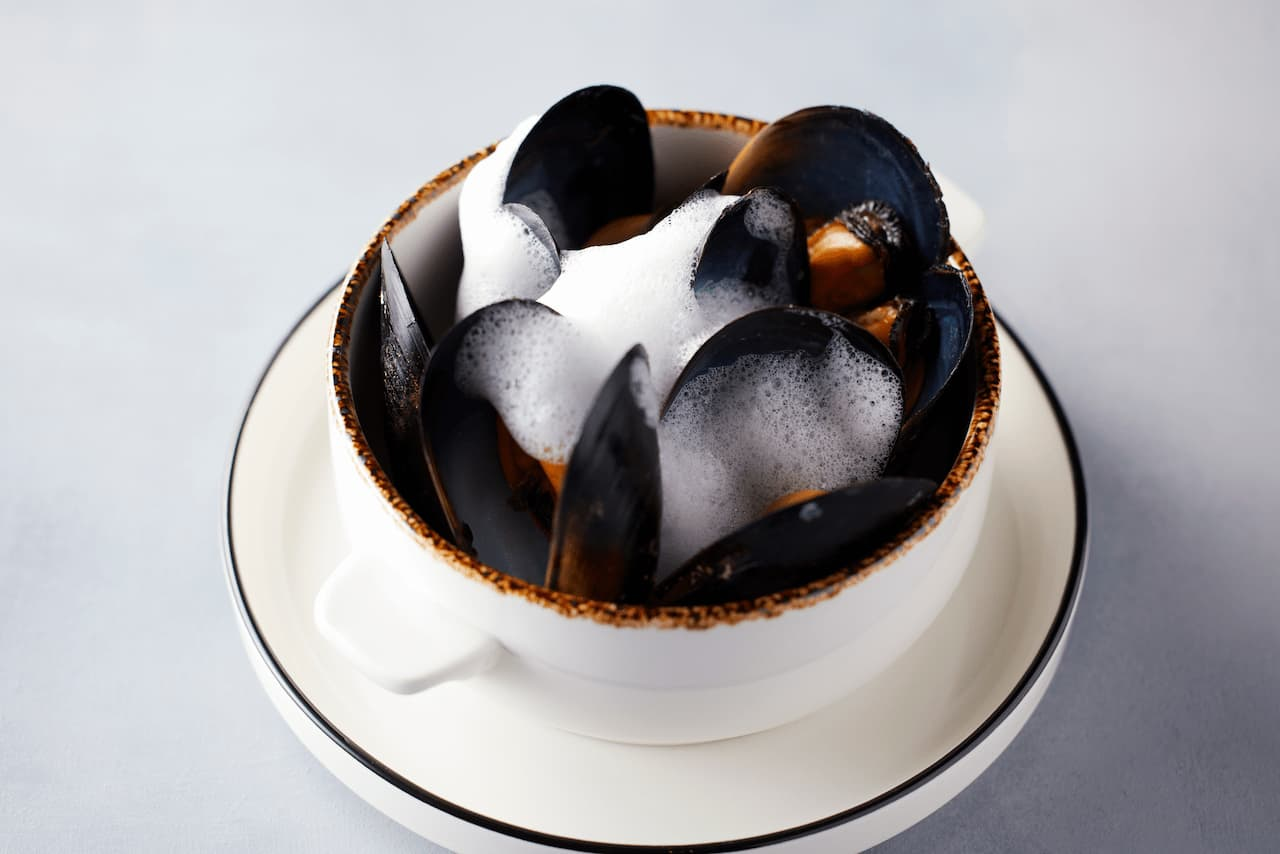 三陸産ムール貝の旨味を白ワインでふっくら引き出し、香り高いローリエのエキュームをまとわせた上品な一品です。